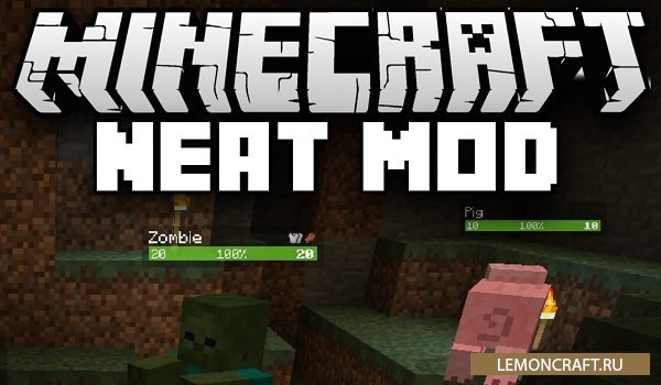 Мод Neat дает возможность видеть сколько осталось здоровья у моба. Данная информация отображается в виде небольшой табличке, где видно имя моба и сколько ХП у него осталось.